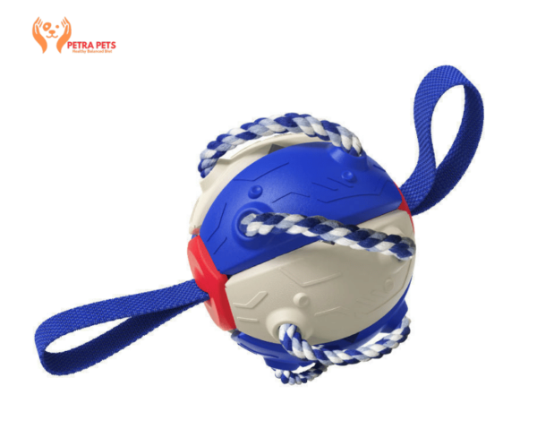 This is a multifunctional fun toy that combines a bounce-back frisbee ball, interactive training ball, teething ball, tug of war toy, and outdoor sports entertainment for multiple playtime fun for your dog.